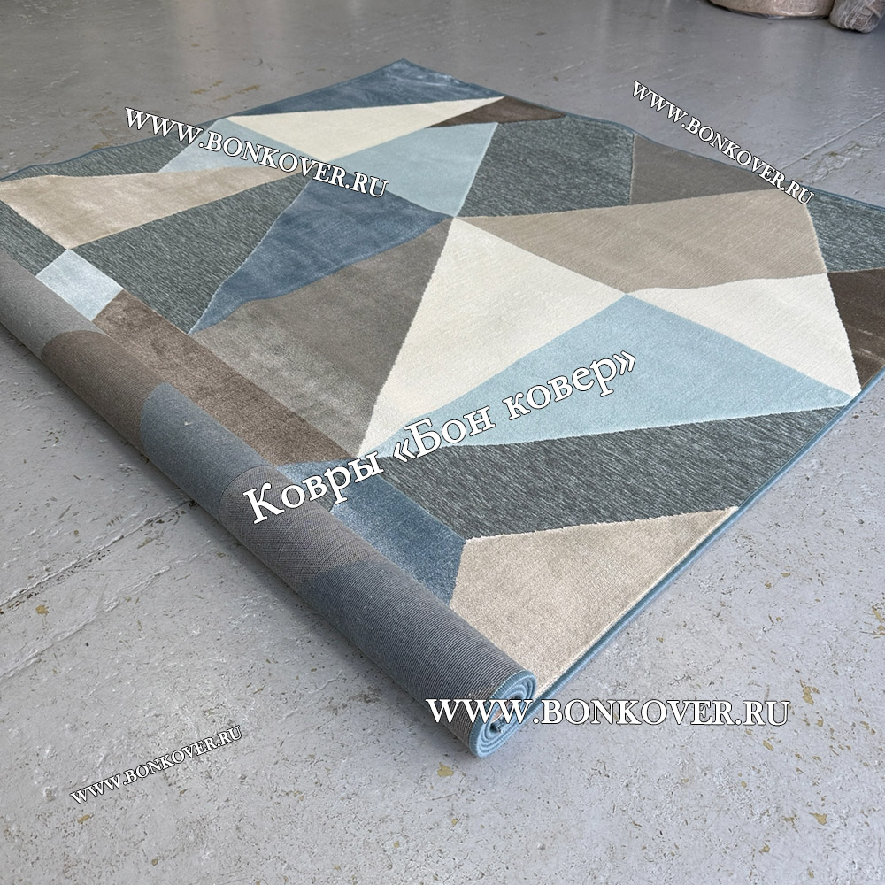 Красивый Геометрический Ковер Из Вискозы Дизайн 21617 наполняет интерьер комнаты теплом и уютом, гармонично сочетает в себе изящество и красоту. Он создан из износостойких материалов, прочный и долговечный.