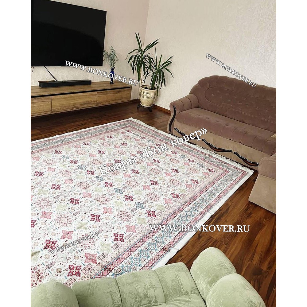 21.09.2019 Читать полный отзывХороший качественный ковер. Простой на первый взгляд рисунок при более детальном рассмотрении оказывается довольно интересным. Неброский, но и не скучный – достойно вписался в интерьер комнаты, отлично оживил обстановку. Чистка не требует особых усилий.