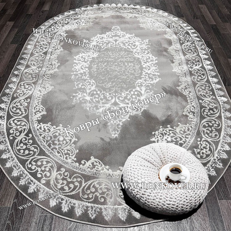 Красивый Современный Турецкий Ковер Дизайн 182 Серый Овал наполняет интерьер гостиной теплом и уютом, гармонично сочетает в себе изящество и красоту. Он соткан из высококачественных материалов, прочный и долговечный.